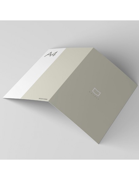 La carpeta díptica se conoce así por estar compuesta de dos hojas impresas a tamaño A3 plegado, de forma que se incorpora información gráfica en ambas caras internas, potenciando así la visualización de la impresión.